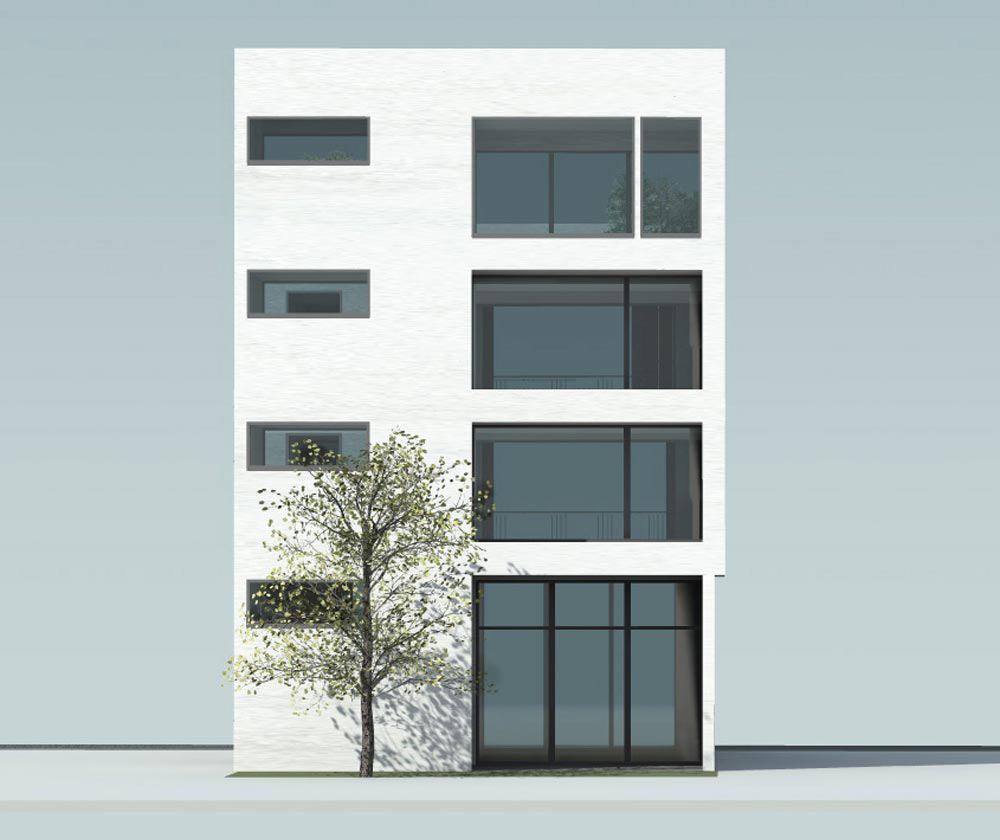 The visual features of the facade vary depending on the time of the day, the lighting conditions and the desired level of privacy.