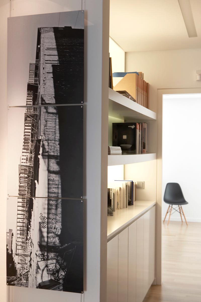 Parts of the division walls have been substituted by glass partitions, allowing light, shadows, reflections and colours to animate the space, always giving away hints of its occupancy.