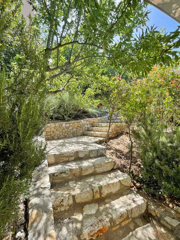 The key design gesture was to locate the new building on the opposite side of the large linear peanut trees plot and enlarge the experience by creating a nonlinear connection path along which all the nature experiential activities are generated (farming plots, insect nests, an aromatic garden, a threshing floor, a tree house, a barefoot path etc). At the end of the path, the new building is volumetrically formed so that it looks even smaller and that both workshop classes offer the feeling of being in-between nature. The materials and technical solutions used (wooden façade, rough stone paths, green roofs, recycled materials etc.) align with the environmental design approach.
