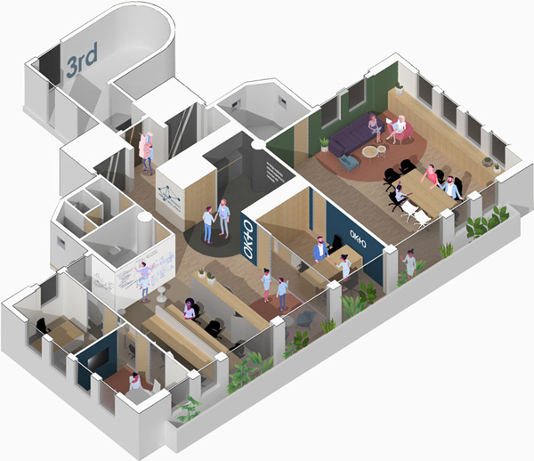 OKTO, as aiming high, was in need of a new, fresh, contemporary and motivating working environment for its 60+ employees, to accumulate all its existing operations and future evolution.