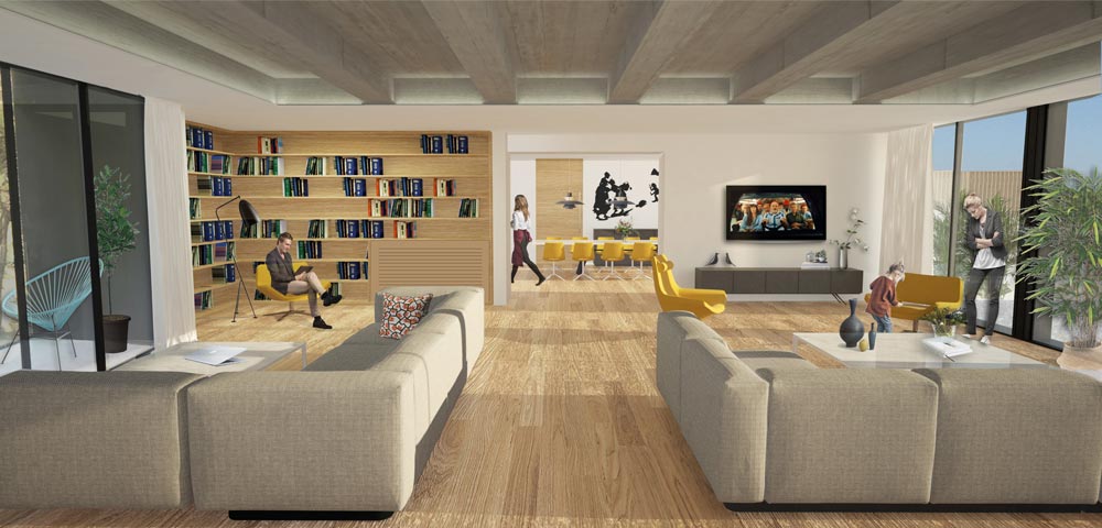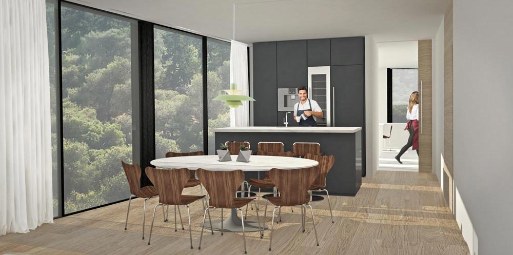 The new L shaped penthouse is functionally arranged in two linear sections: