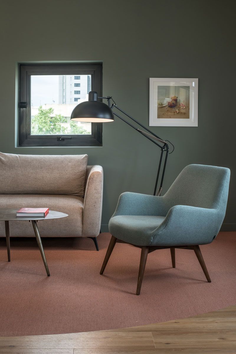 Many existing OKTOs furniture where reused gathered on the ground floor in a mix & match sense.